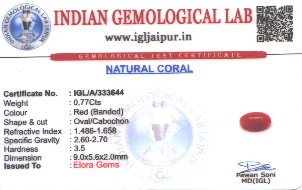 Natural Red Coral (Pavalam) weighing 0.77 carats In Oval from Japan