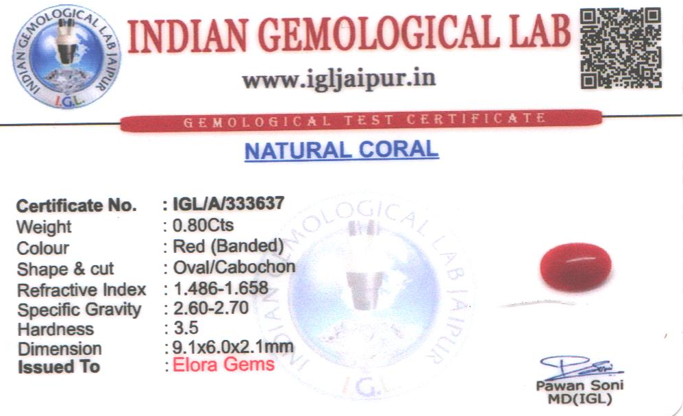 Natural Red Coral (Pavalam) weighing 0.8 carats In Oval from Japan