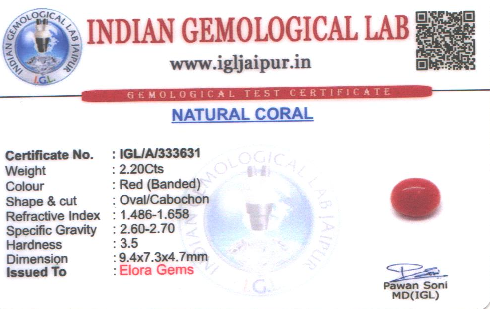 Natural Red Coral (Pavalam) weighing 2.2 carats In Oval from Japan