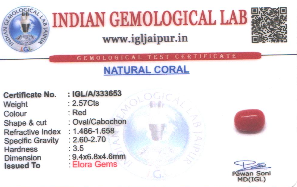 Natural Red Coral (Pavalam) weighing 2.57 carats In Oval from Italy