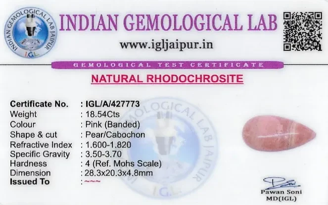 Natural Rhodochrosite weighing 18.54 carats In Round