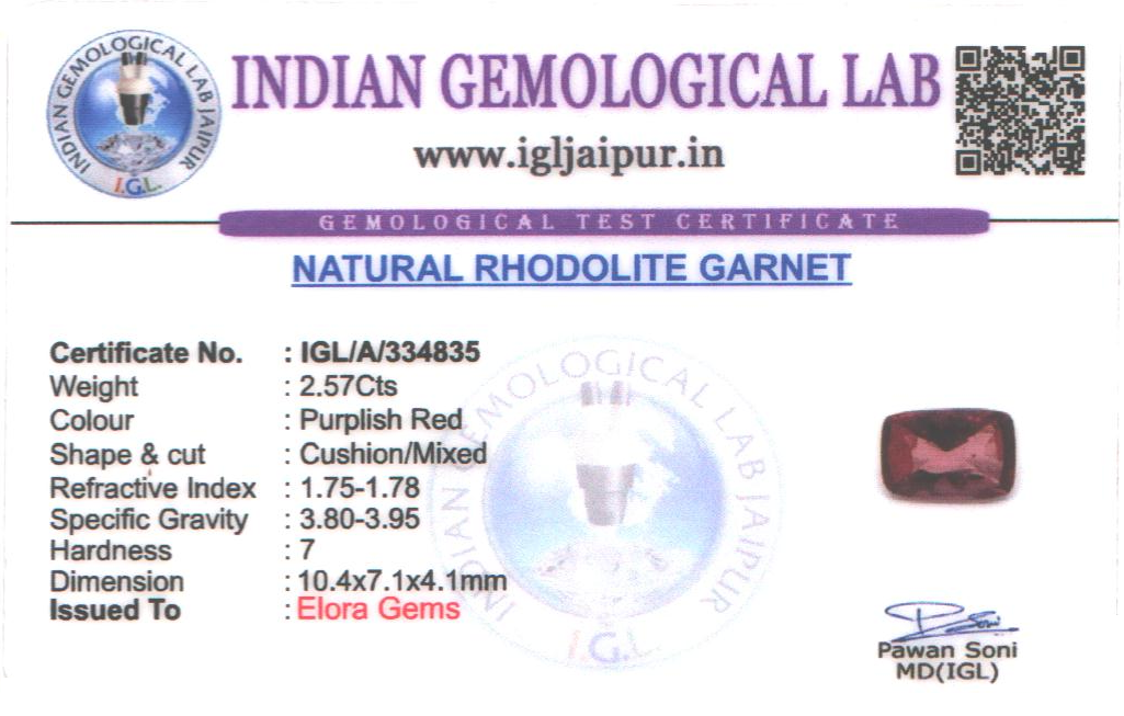 Natural Rhodolite Garnet weighing 2.57 carats In Cushion