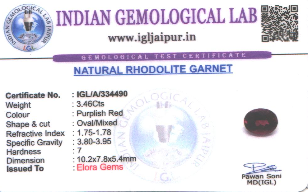 Natural Rhodolite Garnet weighing 3.46 carats In Oval