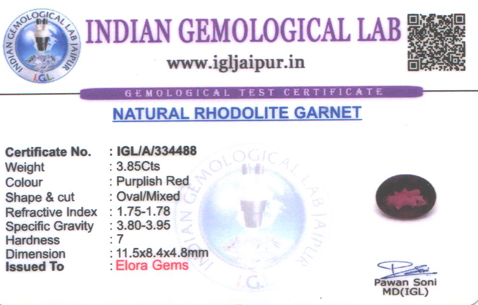 Natural Rhodolite Garnet weighing 3.85 carats In Oval