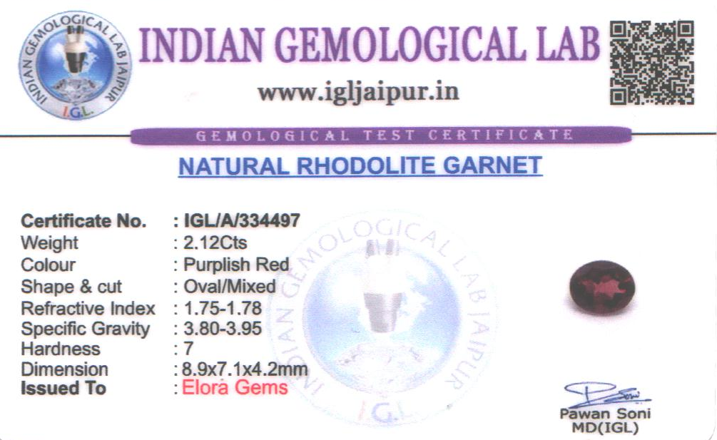 Natural Rhodolite Garnet weighing 2.12 carats In Oval