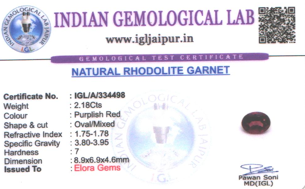 Natural Rhodolite Garnet weighing 2.18 carats In Oval