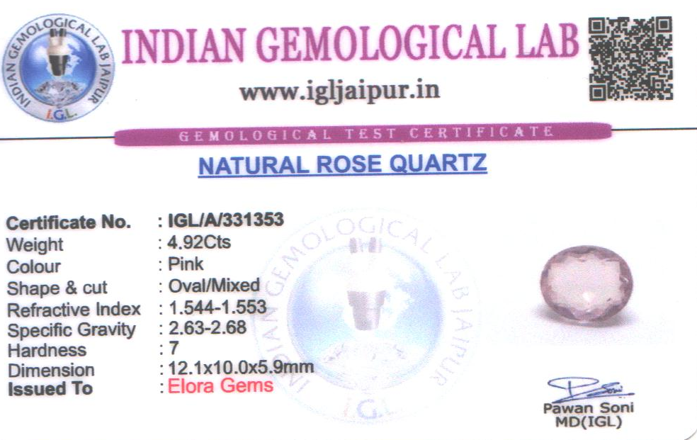 Natural Rose Quartz weighing 4.92 carats In Oval