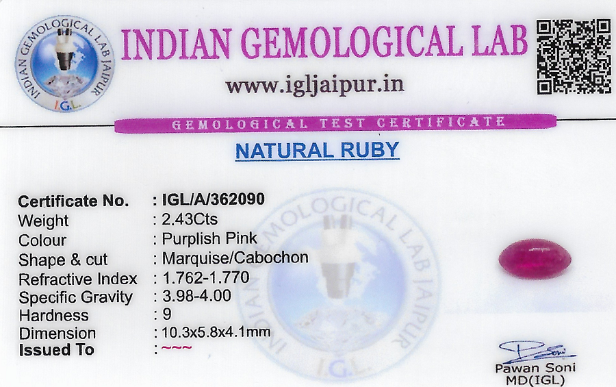 Natural Ruby (Manik) weighing 2.43 carats In Marquise from Thailand