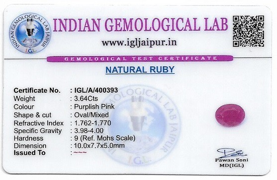 Natural Ruby (Manik) weighing 3.64 carats In Oval from Africa