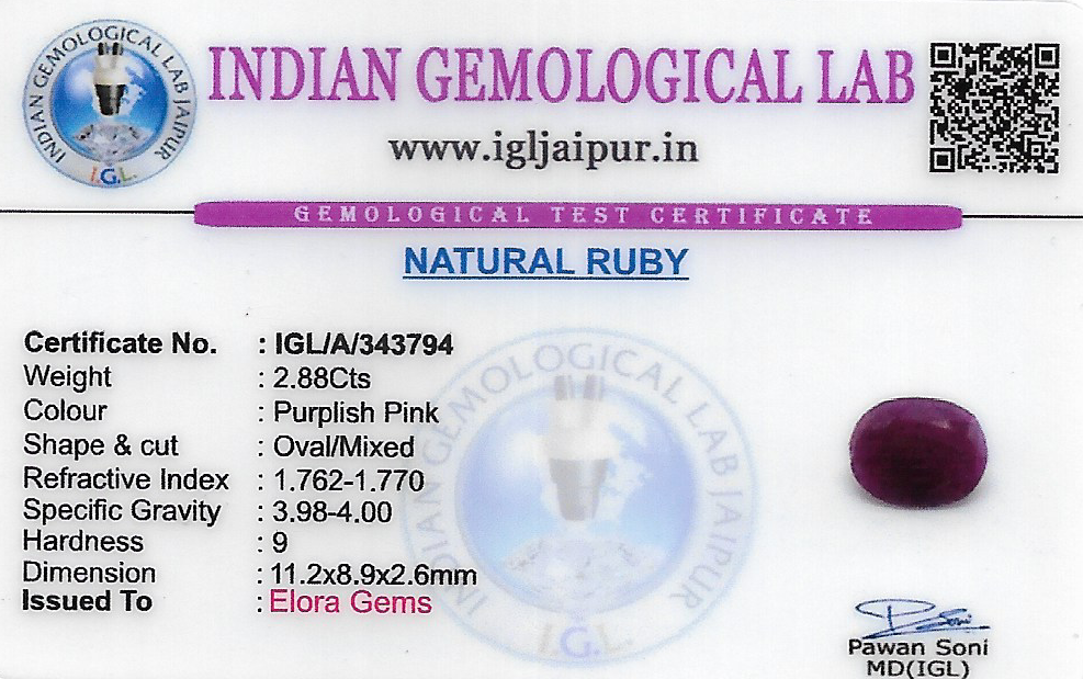 Natural Ruby (Manik) weighing 2.88 carats In Oval from India