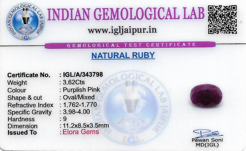 Natural Ruby (Manik) weighing 3.62 carats In Oval from India