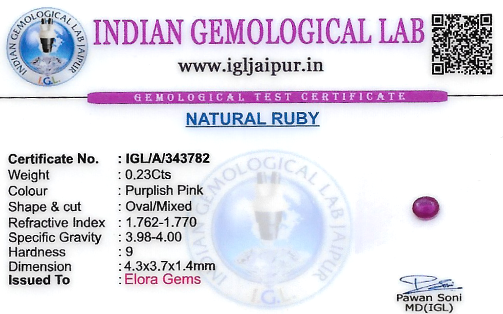 Natural Ruby (Manik) weighing 0.23 carats In Oval from Thailand