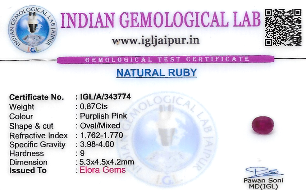 Natural Ruby (Manik) weighing 0.87 carats In Oval from Thailand