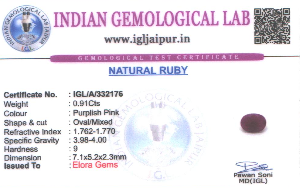 Natural Ruby (Manik) weighing 0.91 carats In Oval from Thailand