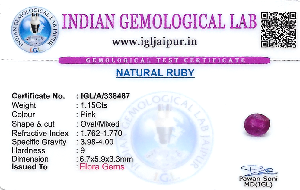 Natural Ruby (Manik) weighing 1.15 carats In Oval from Myanmar (Burma)
