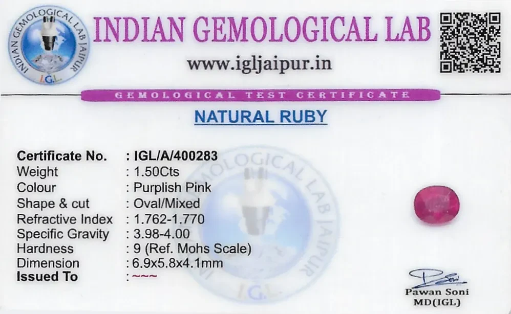 Natural Ruby (Manik) weighing 1.5 carats In Oval from Thailand