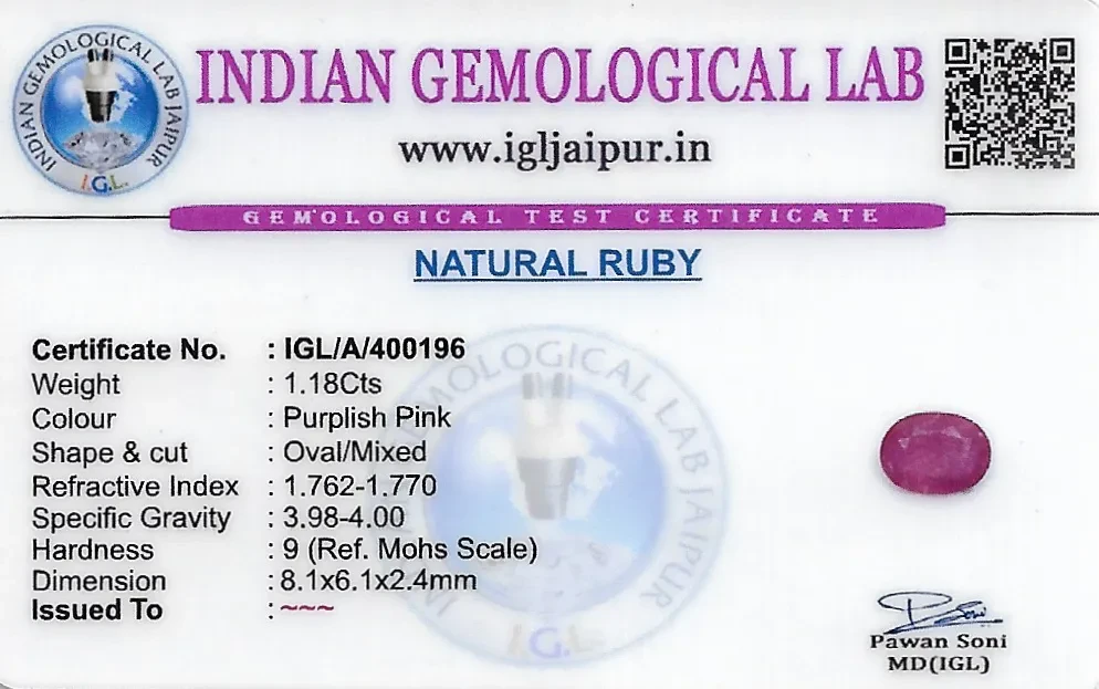 Natural Ruby (Manik) weighing 1.18 carats In Oval from Thailand