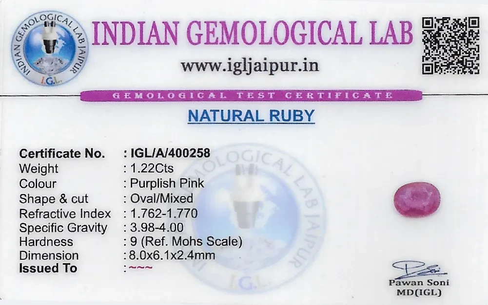 Natural Ruby (Manik) weighing 1.22 carats In Oval from Thailand