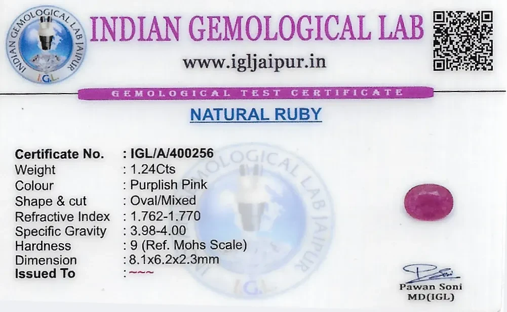 Natural Ruby (Manik) weighing 1.24 carats In Oval from Thailand