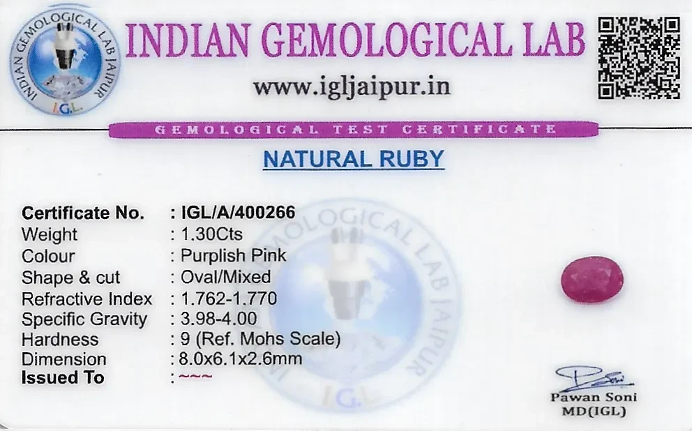 Natural Ruby (Manik) weighing 1.3 carats In Oval from Thailand