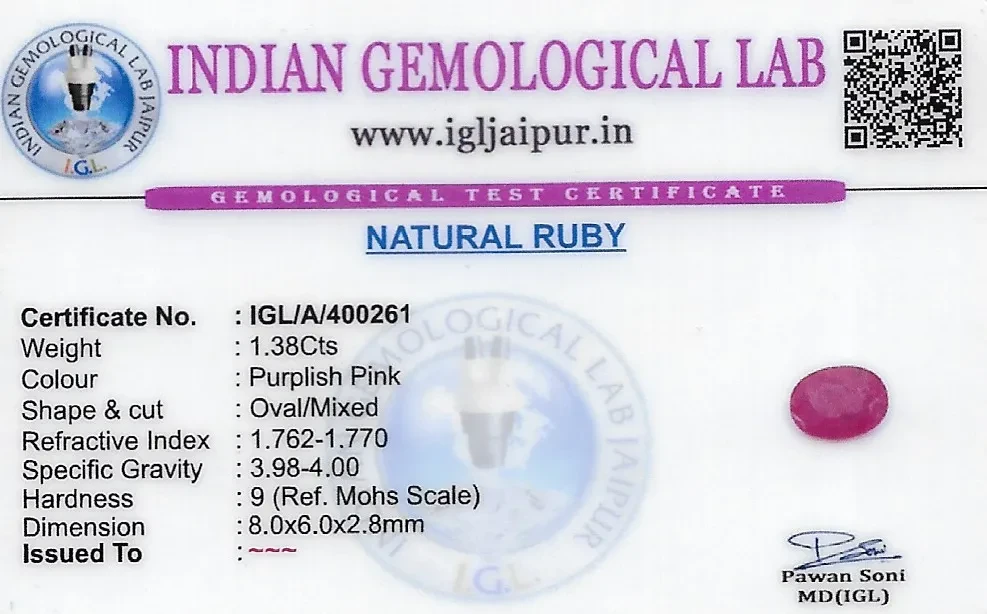 Natural Ruby (Manik) weighing 1.38 carats In Oval from Thailand