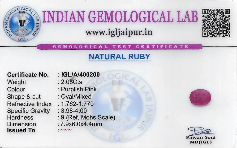 Natural Ruby (Manik) weighing 2.05 carats In Oval from Thailand