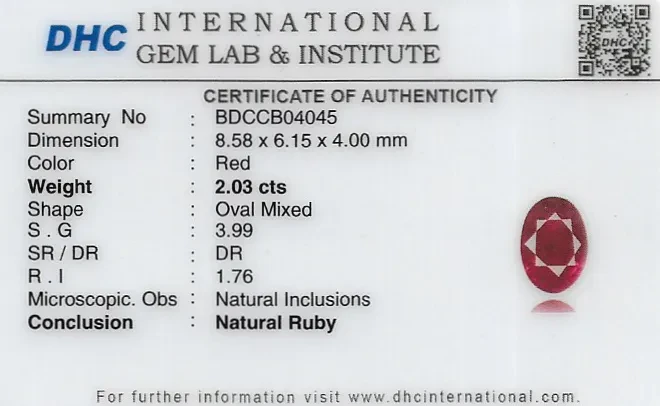 Natural Ruby (Manik) weighing 2.03 carats In Oval from Thailand