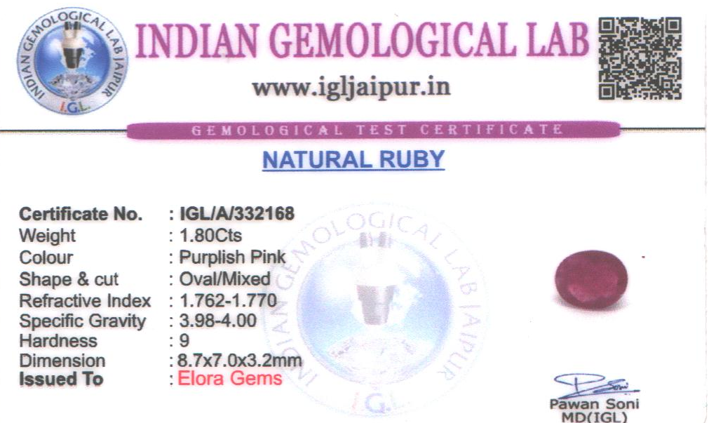 Natural Ruby (Manik) weighing 1.8 carats In Oval from Thailand