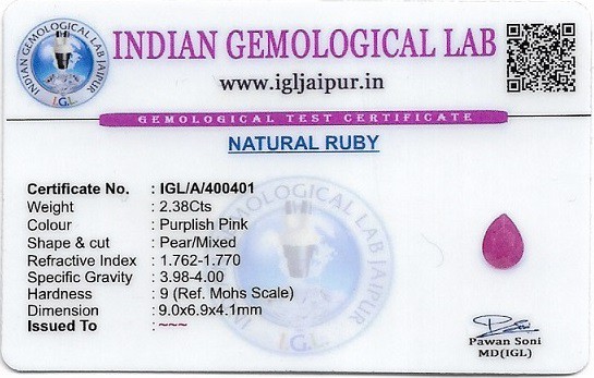 Natural Ruby (Manik) weighing 2.38 carats In Pear from Africa