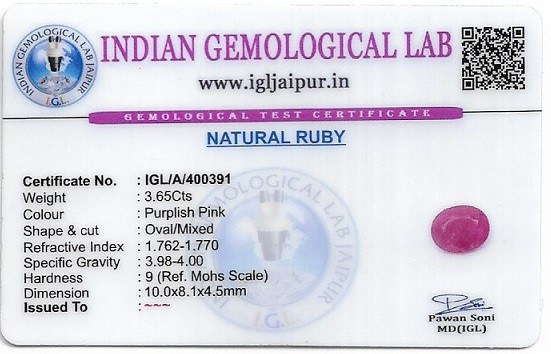 Natural Ruby (Manik) weighing 2.5 carats In Oval from Africa