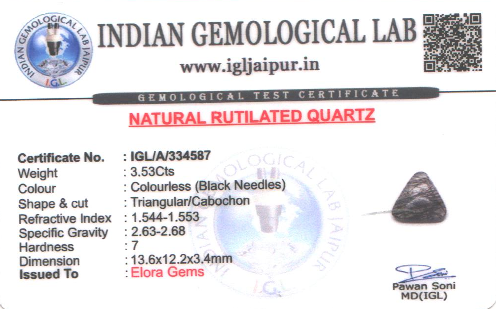 Natural Rutilated Quartz weighing 3.53 carats In Triangular