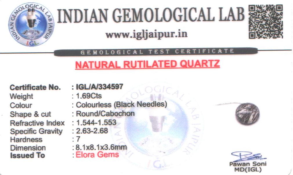 Natural Rutilated Quartz weighing 1.69 carats In Round