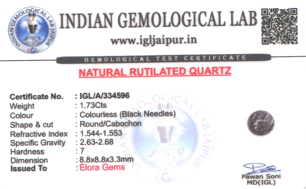 Natural Rutilated Quartz weighing 1.73 carats In Round
