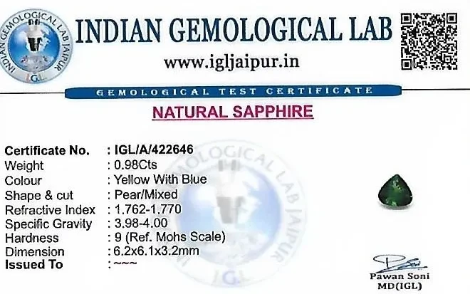 Natural Sapphire weighing 0.98 carats In Pear from Thailand