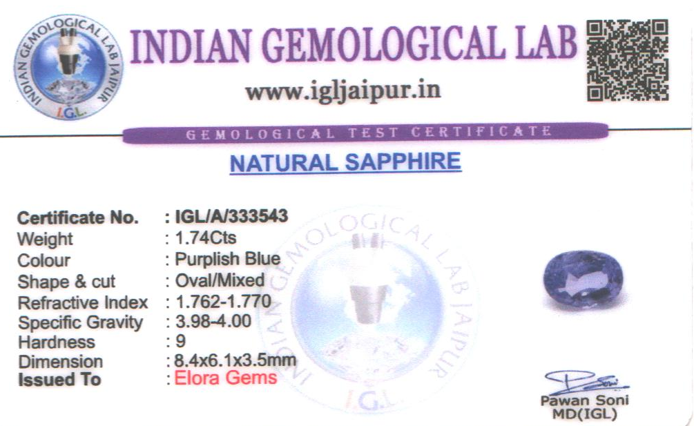 Natural Sapphire weighing 1.74 carats In Oval from Sri Lanka (Ceylon)