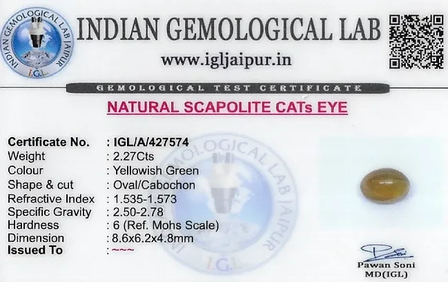 Natural Scapolite Cat's Eye weighing 2.27 carats In Oval