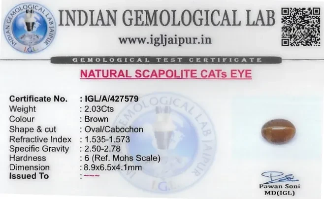 Natural Scapolite Cat's Eye weighing 2.03 carats In Oval