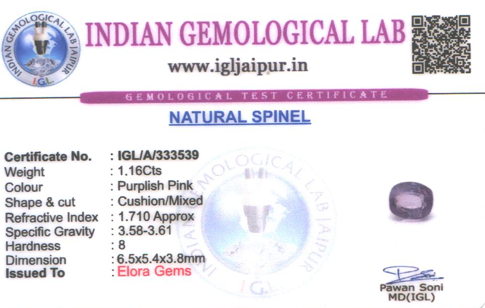 Natural Spinel weighing 1.16 carats In Cushion