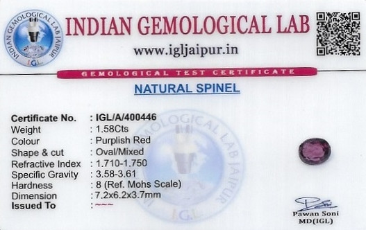 Natural Spinel weighing 1.58 carats In Oval from Sri Lanka (Ceylon)