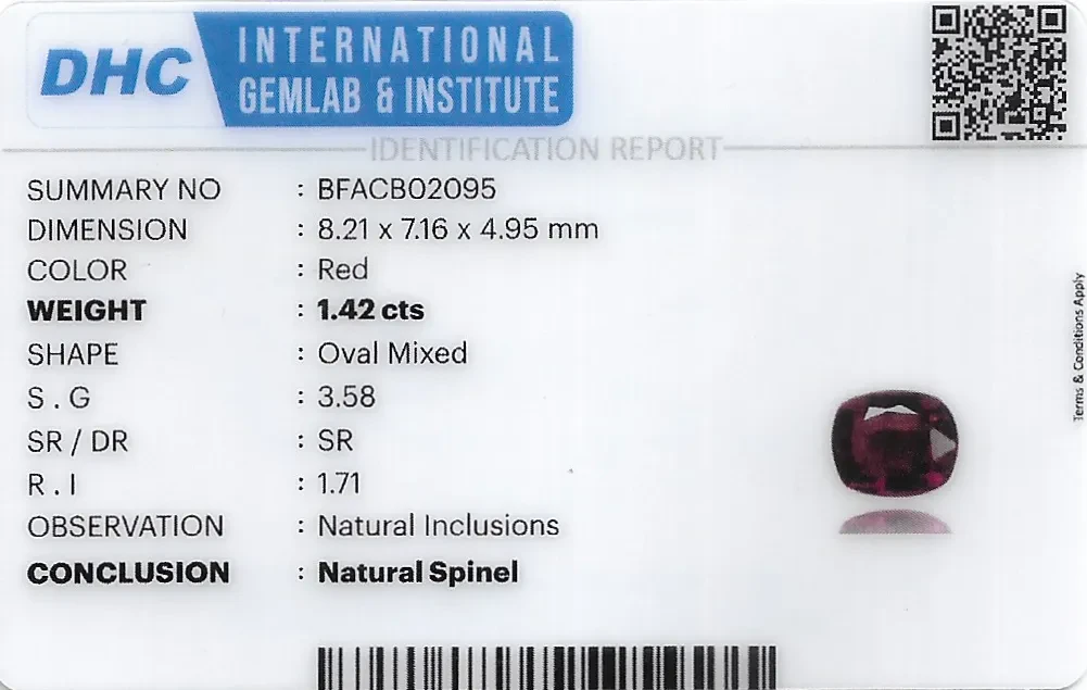 Natural Spinel weighing 1.42 carats In Oval