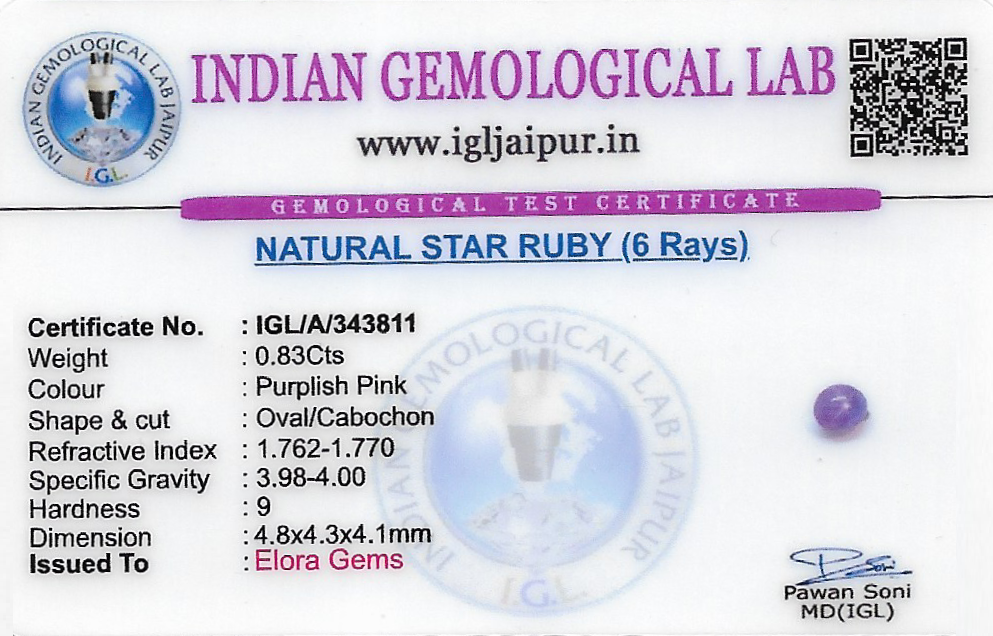 Natural Star Ruby weighing 0.83 carats In Oval