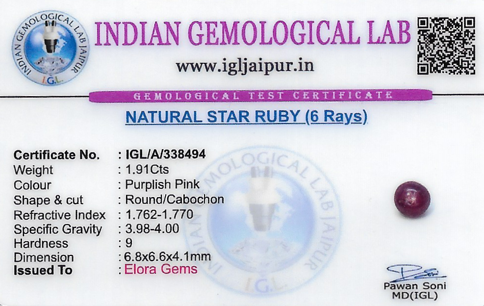Natural Star Ruby weighing 1.91 carats In Round