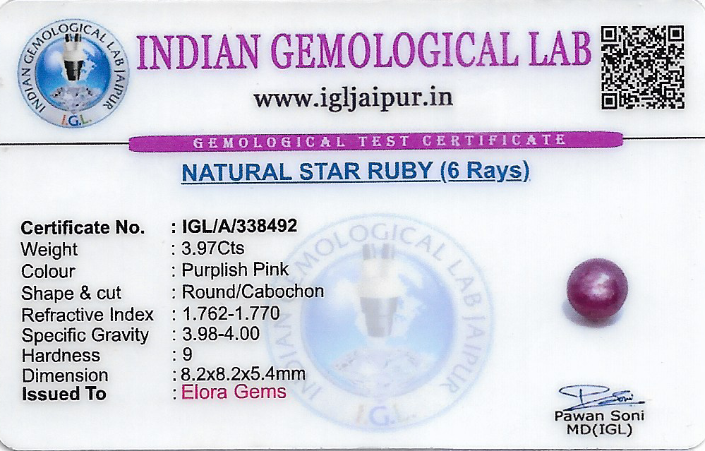 Natural Star Ruby weighing 3.97 carats In Round