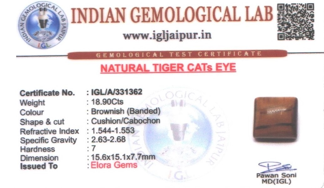 Natural Tigers Eye weighing 18.9 carats In Cushion