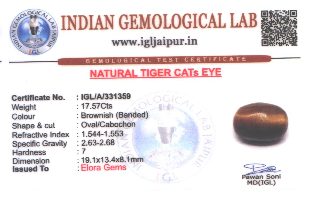 Natural Tigers Eye weighing 17.57 carats In Oval