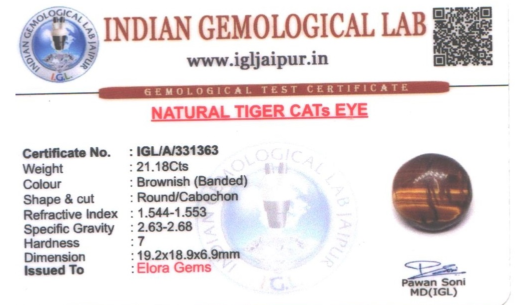 Natural Tigers Eye weighing 21.18 carats In Round