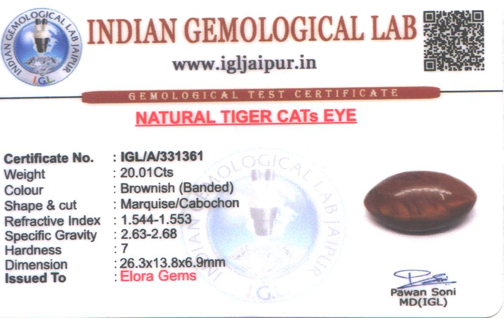 Natural Tigers Eye weighing 20.01 carats In Marquise