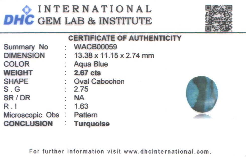 Natural Turquoise weighing 2.67 carats In Oval from USA