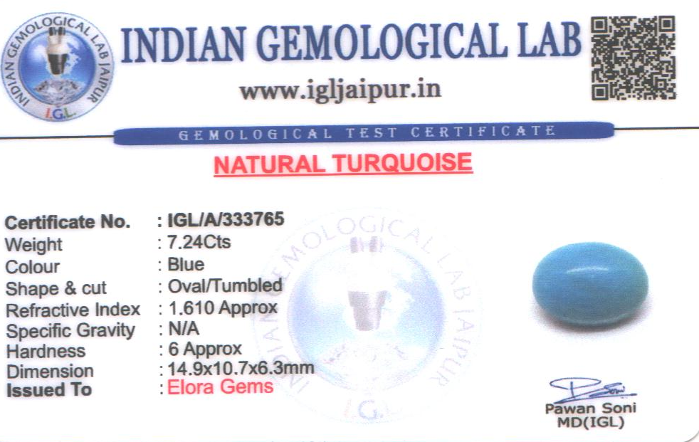 Natural Turquoise weighing 7.24 carats In Oval from USA
