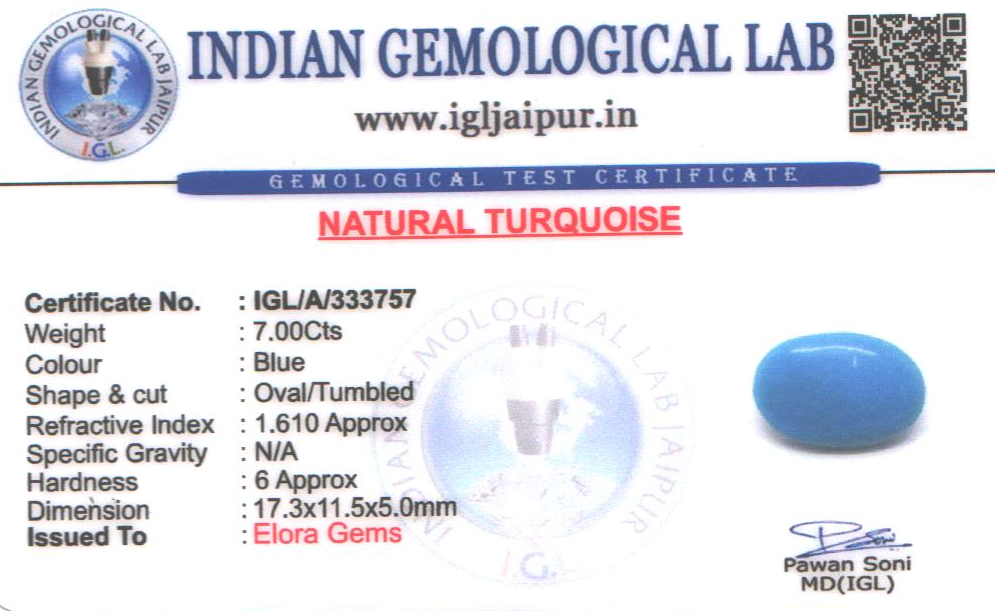 Natural Turquoise weighing 7 carats In Oval from USA